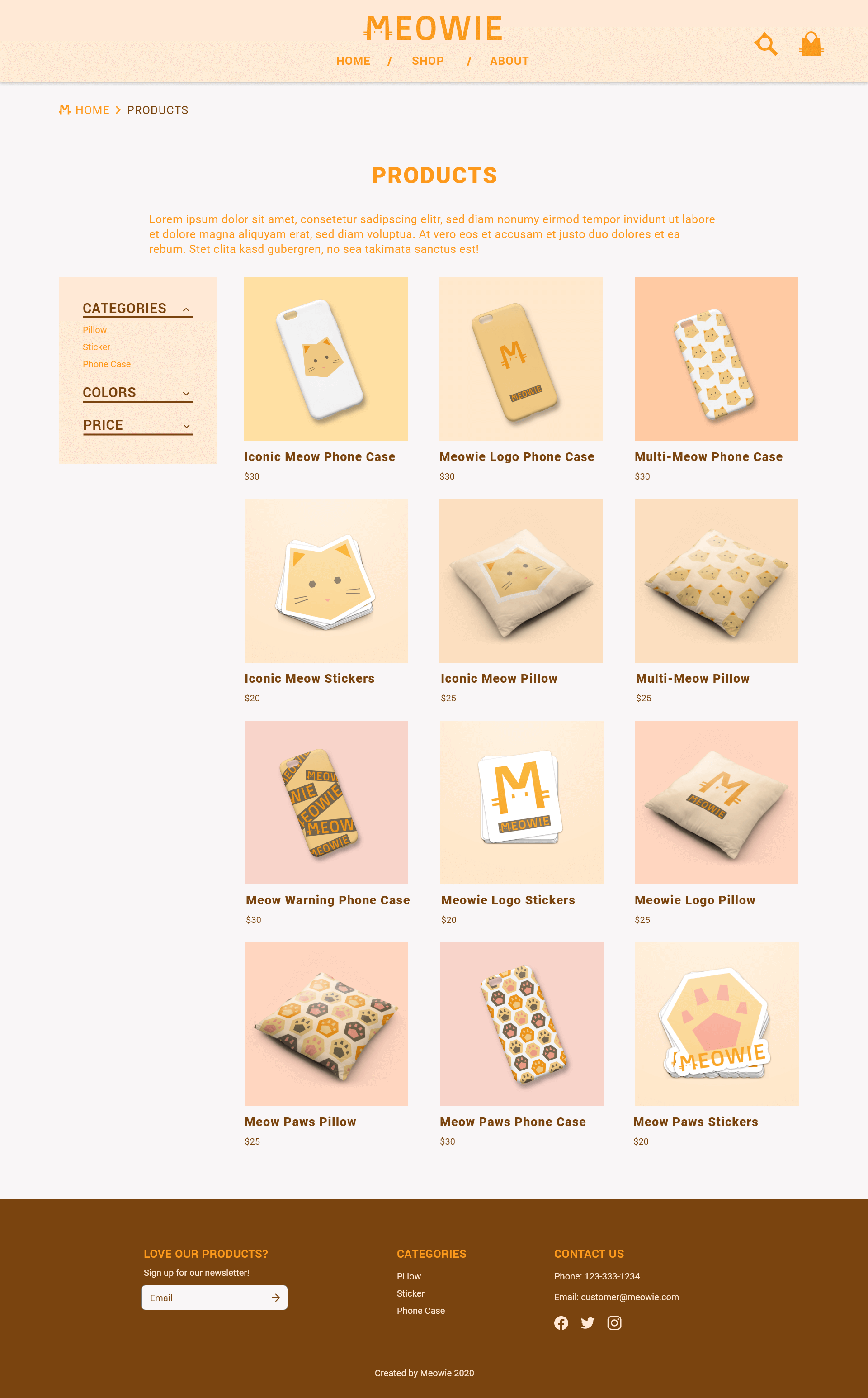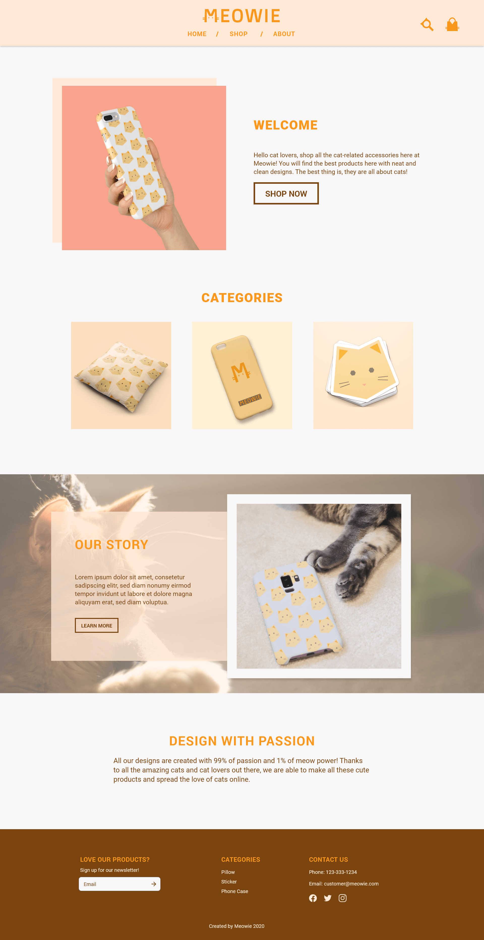 Meowie is an e-commerce store that sells cat-related accessories such as phone cases and vinyl stickers. The designs of Meowie are made up of geometrical shapes. It aims to express the contemporary and clean feeling to all the cat lovers out there.
