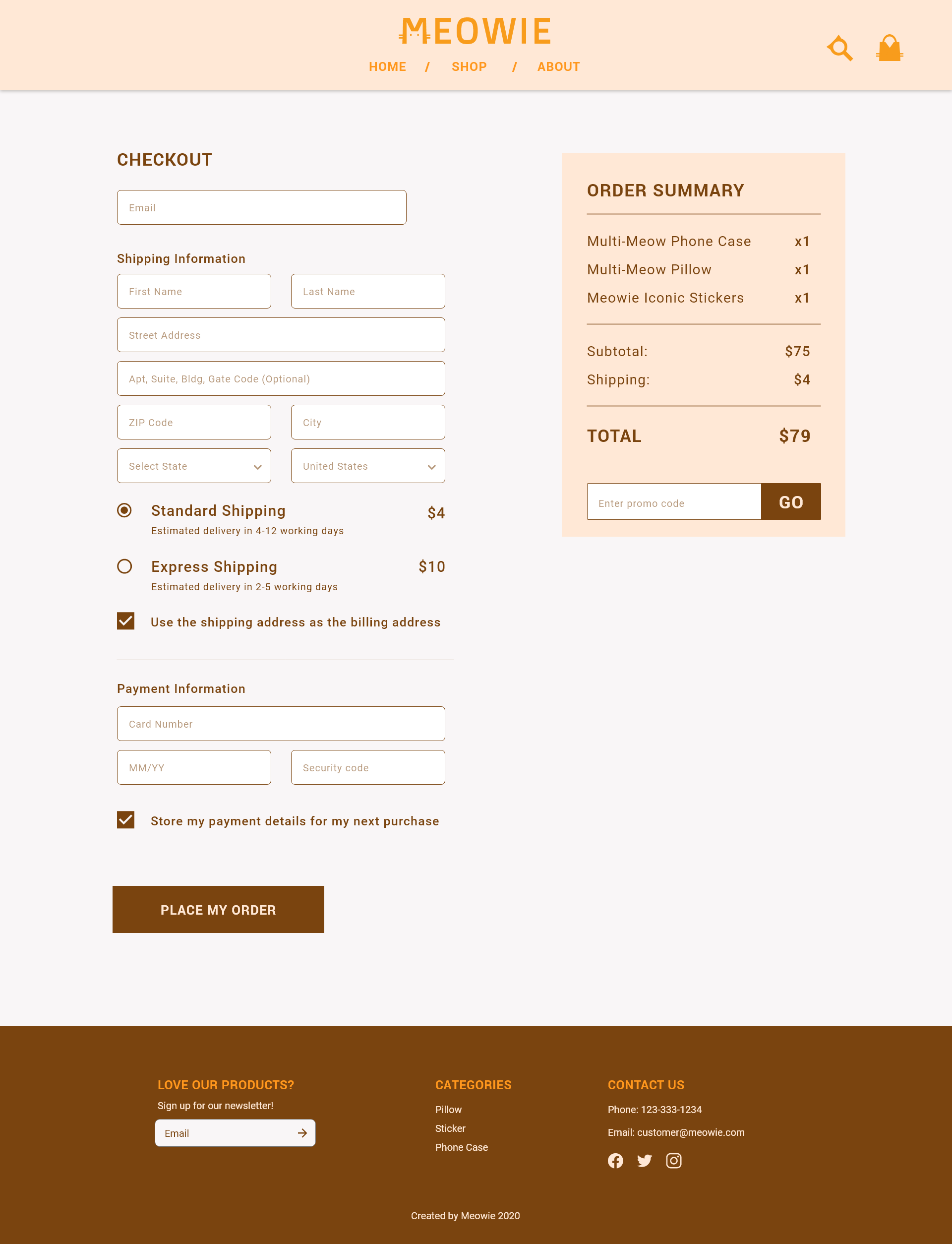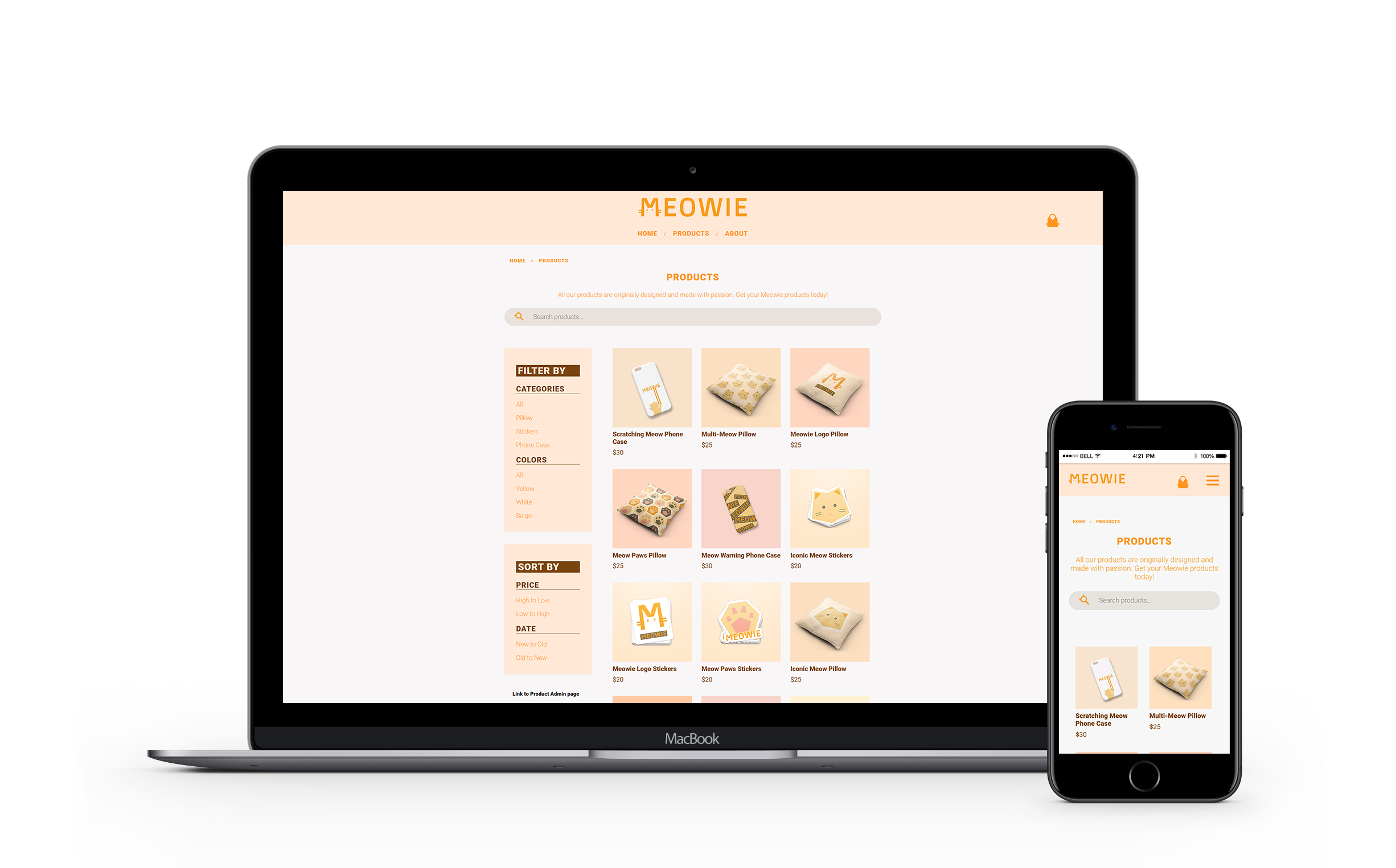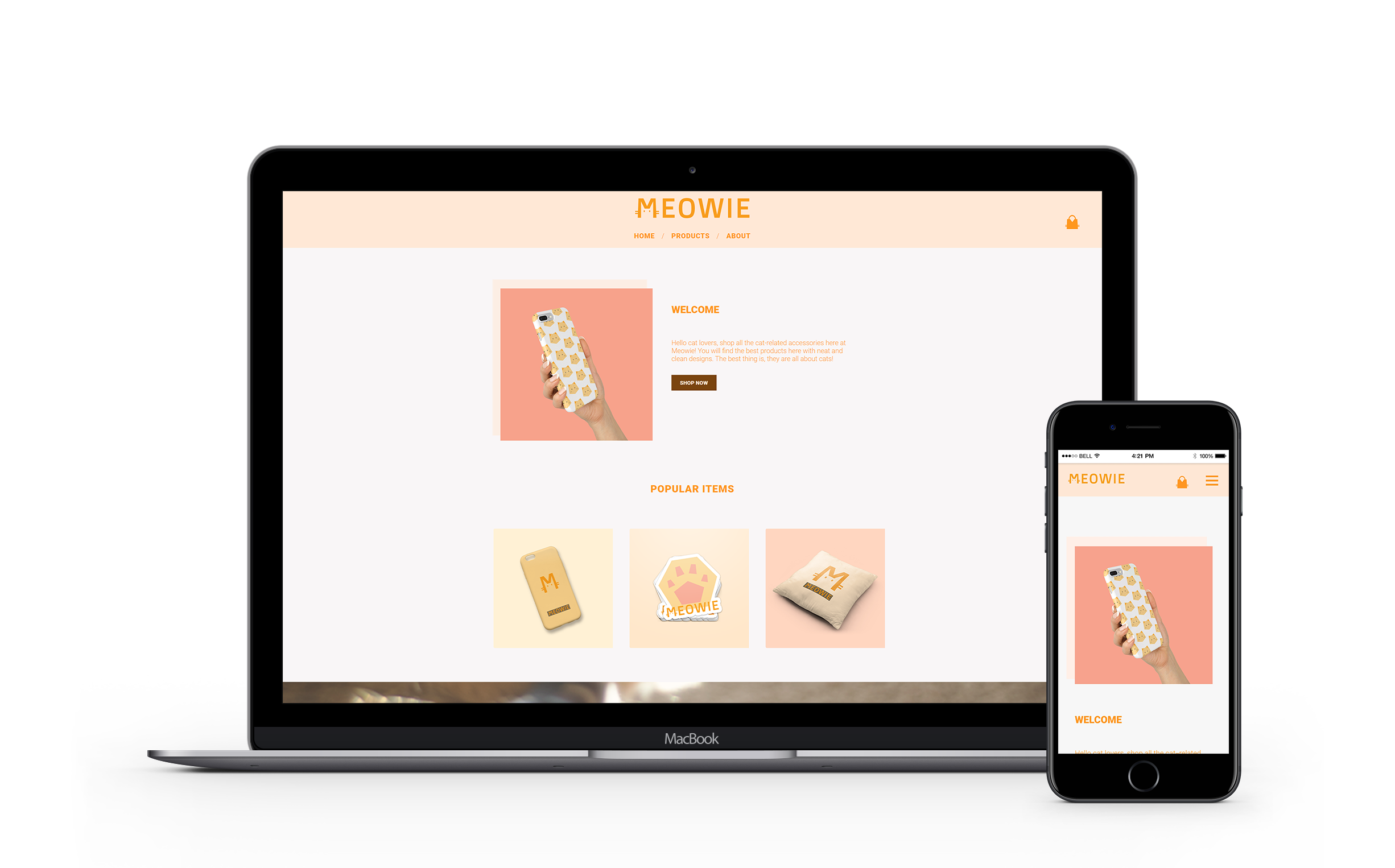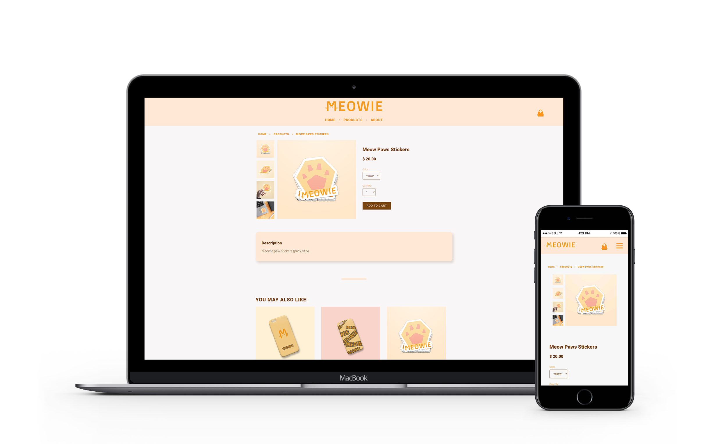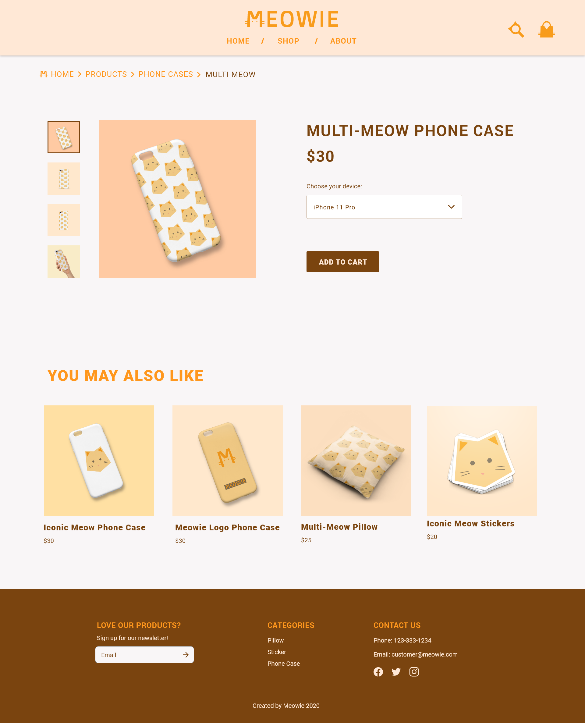I designed a few Meowie products that are available to sell on the Meowie online store, including phone cases, stickers and pillow cases.
