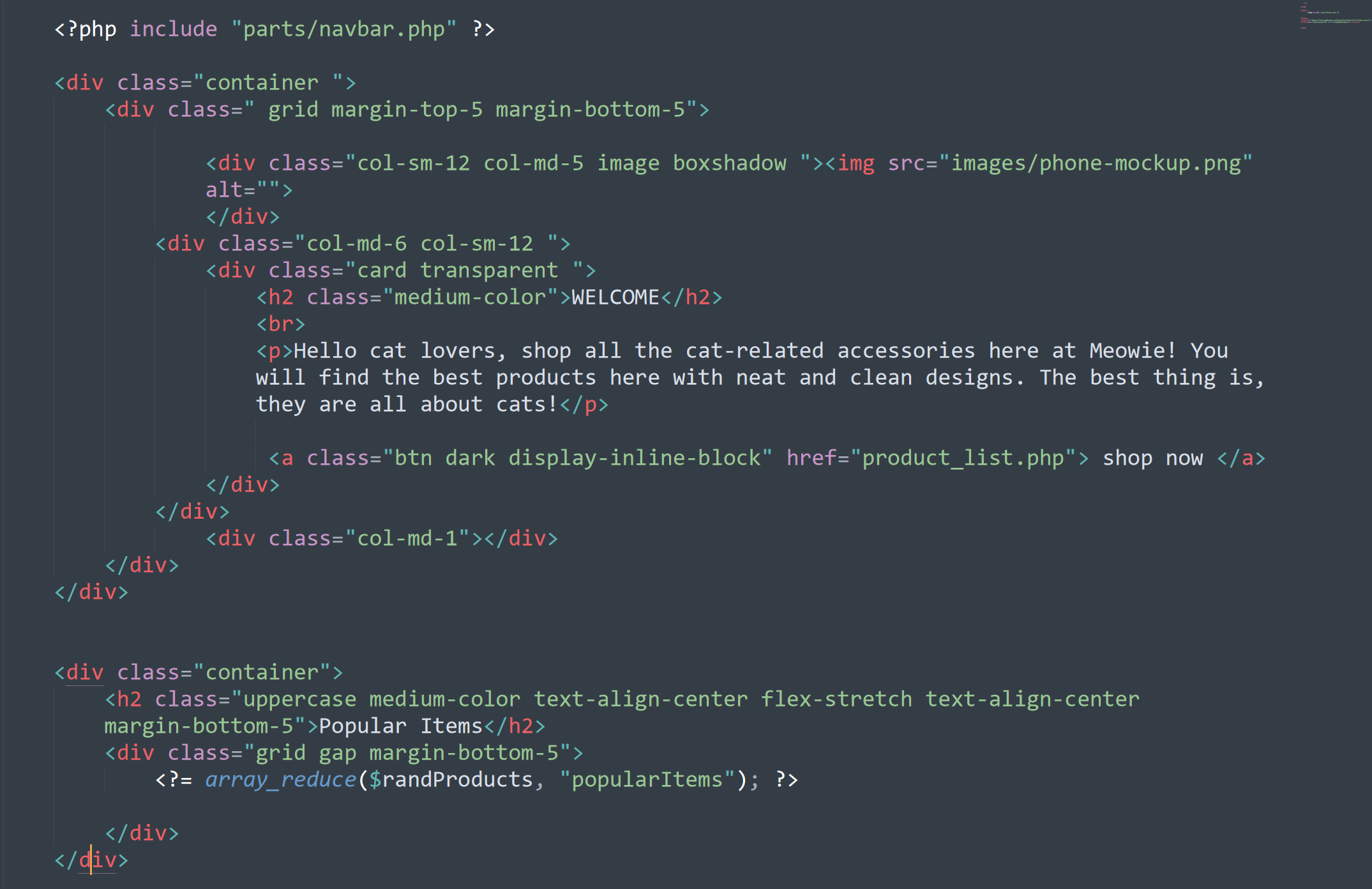 Here are some of the responsive design pages that I coded, with the actual code showed on the side.