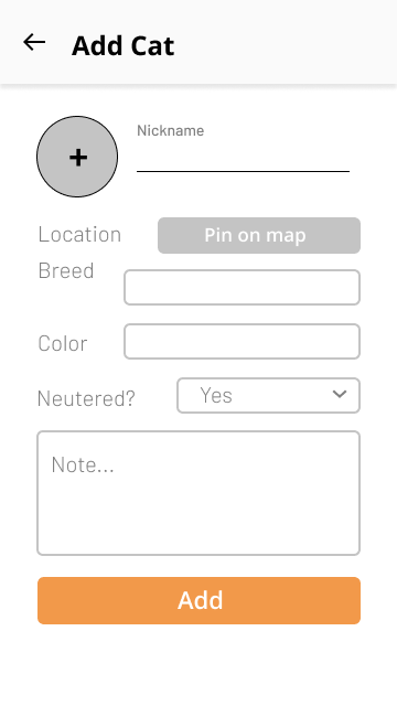 “Purry” is a cat habitat tracking app that allows users to track stray or feral cats near their neighborhood. Users can take photos of the cats, add notes about their status, save their current location, and check if they have been Trap-Neuter-Return (TNR).