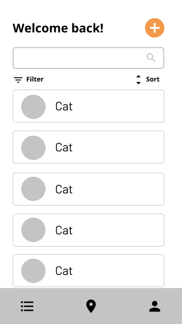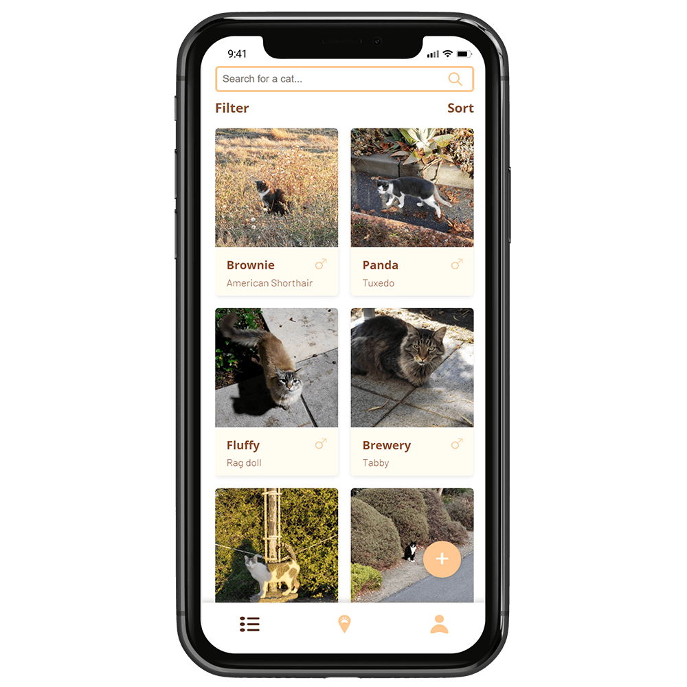 The cat list page lists out all the cats that the user records and they can be filtered and sorted easily. Each cat's basic information will be shown on the page, such as the breed and gender.