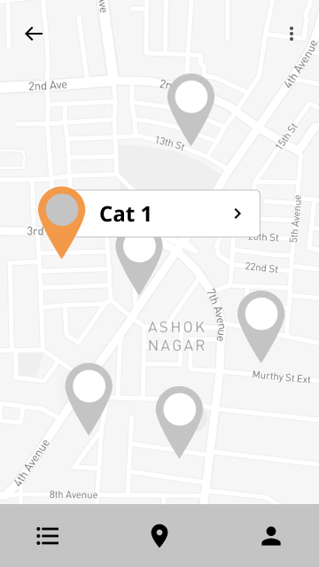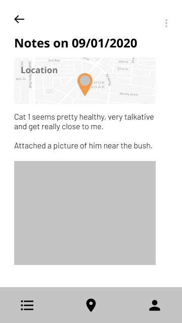 Users can view the current and previous cat's locations that they pinned previously and view the status and descriptions recorded by the user before.
